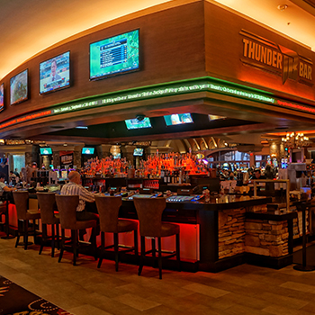 Stop by the Thunder Bar and catch every pass, rebound, birdie, goal or score before you venture out into the casino. Perfect for any sports fanatic, this bar features several beers on tap, all the top shelf spirits you love, eight sparkling high definition LED TVs and a minute-by-minute sports ticker that keeps you on top of every score while enjoying your favorite slots and video poker games.